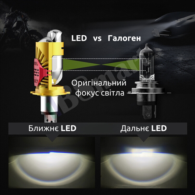 Mini lens мото лінза BSmart BS09 із цоколем H4 — це чудове рішення для освітлення доріг на мотоциклах, скутерах, квадроциклах і мопедах. Лампа забезпечує надійне ближнє й дальнє світло, обладнана високоефективними LED-чипами з потужним світловим потоком і економним енергоспоживанням. Ближнє світло реалізоване на чипах 3570 LED (6 штук), дальній — на чипах 1860 LED (3 штуки). Підтримує роботу за напруги від 9 до 40 В (змінний струм) і від 9 до 85 В (постійний струм).
